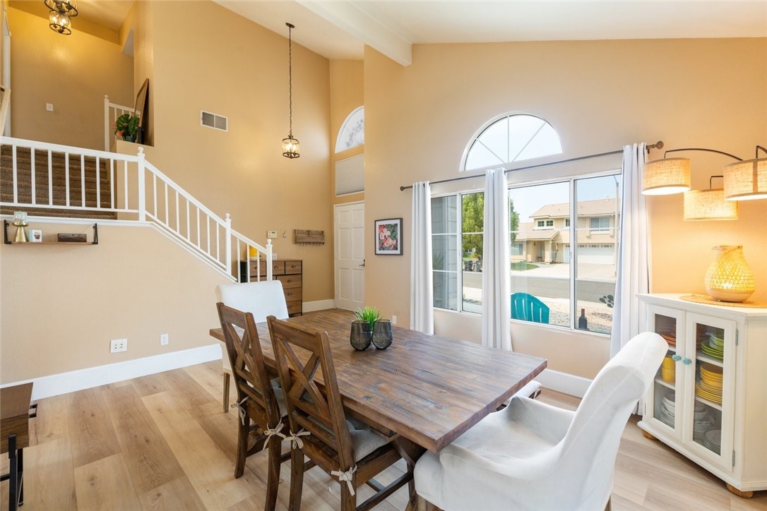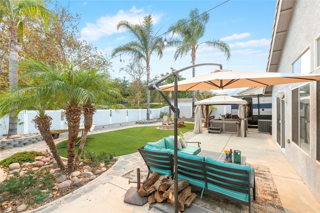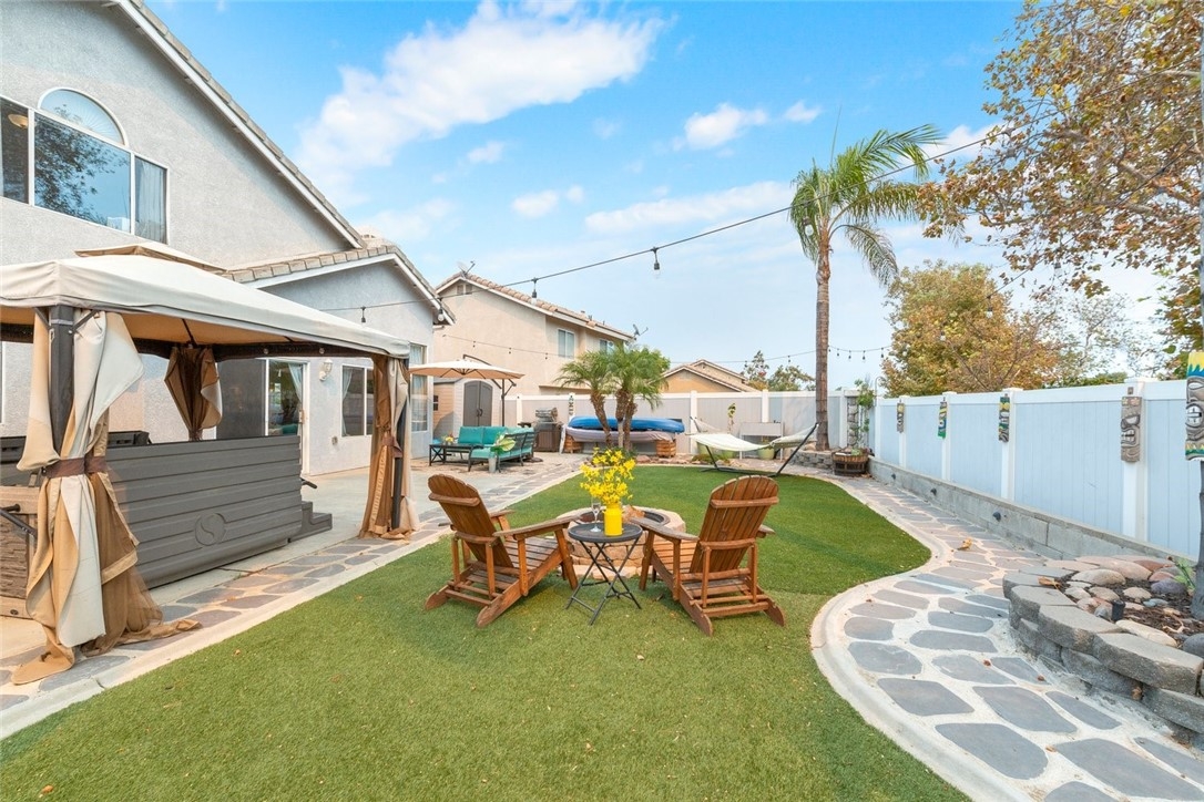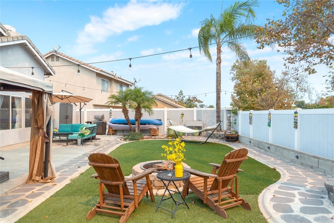 RV 40' PARKING | TURNKEY MOVE-IN READY | UPGRADES | OPEN FLOORPLAN | MOUNTAIN VIEWS | NO MELLO ROOS & LOW TAX | LOW HOA | Welcome to your new home in the sought-after Horse Thief Canyon community of Corona! Soaring cathedral ceilings & tons of windows make this home light and bright throughout. Truly move-in ready with tons of UPGRADES including PREMIUM wide-plank vinyl flooring throughout the downstairs, wide floorboards, RECESSED lighting, and upgraded gorgeous lighting fixtures. KITCHEN: The chef will love the stunning QUARTZ countertops, beautiful GLASS SUBWAY TILE backsplash, STAINLESS STEEL appliances, DEEP & WIDE sink with upgraded faucet, BREAKFAST BAR seating, RECESSED lighting & plenty of counterspace & cabinetry. FAMILY ROOM: Adjoining the kitchen and dining room is a well-positioned OPEN-CONCEPT family room - perfect for indoor/outdoor entertaining or snuggling around the gas fireplace on cool evenings. PRIMARY BEDROOM is spacious with a BUILT-IN VANITY and has a LARGE WALK-IN CLOSET, ENSUITE BATHROOM with OVERSIZED CUSTOM WALK-IN SHOWER with DUAL-SHOWERHEADs & extra-wide bench, PRIVACY DOOR for toilet room & large storage cabinet for linens. BEDROOMS 2 & 3 also have WALK-IN CLOSETS & share a JACK-AND-JILL BATHROOM making this perfect for anyone seeking TWO MASTER BEDROOMS! Your 3RD BATHROOM is a FULLY RENOVATED POWDER ROOM on the first floor for guests with upgraded toilet, standalone QUARTZ countertop vanity & upgraded lighting and fixtures. LAUNDRY is inside tucked into the garage. OUTDOORS: This home is all about low maintenance and entertaining! Front-yard is drought-tolerant landscaping and back-yard is low/no-maintenance with artificial turf (no mowing anywhere!), mature palm trees, an expansive cement patio & vinyl-fencing. Relax in your SPA with water features & spa-lighting under your GAZEBO before enjoying star-gazing time beside your backyard FIRE-PIT. You'll love the PRIVACY of backing onto a greenspace so no backyard neighbors! PARKING: 40' CEMENT RV PAD runs along the side of the property behind double-gates. A TWO-CAR GARAGE as well as wide-driveway and plenty of street parking means ample room for friends and family when visiting. AMENITIES: Perfectly located with beautiful MOUNTAIN VIEWS and a 2 minute walk to the resort-like community center including POOL, SPA, TENNIS COURTS, GYM, kids playground, and sports field. LOCATION: Walk to the elementary school & close to Hwy 15 with easy access to nearby shopping/restaurants.
