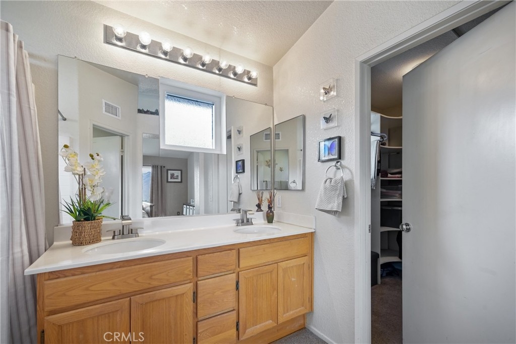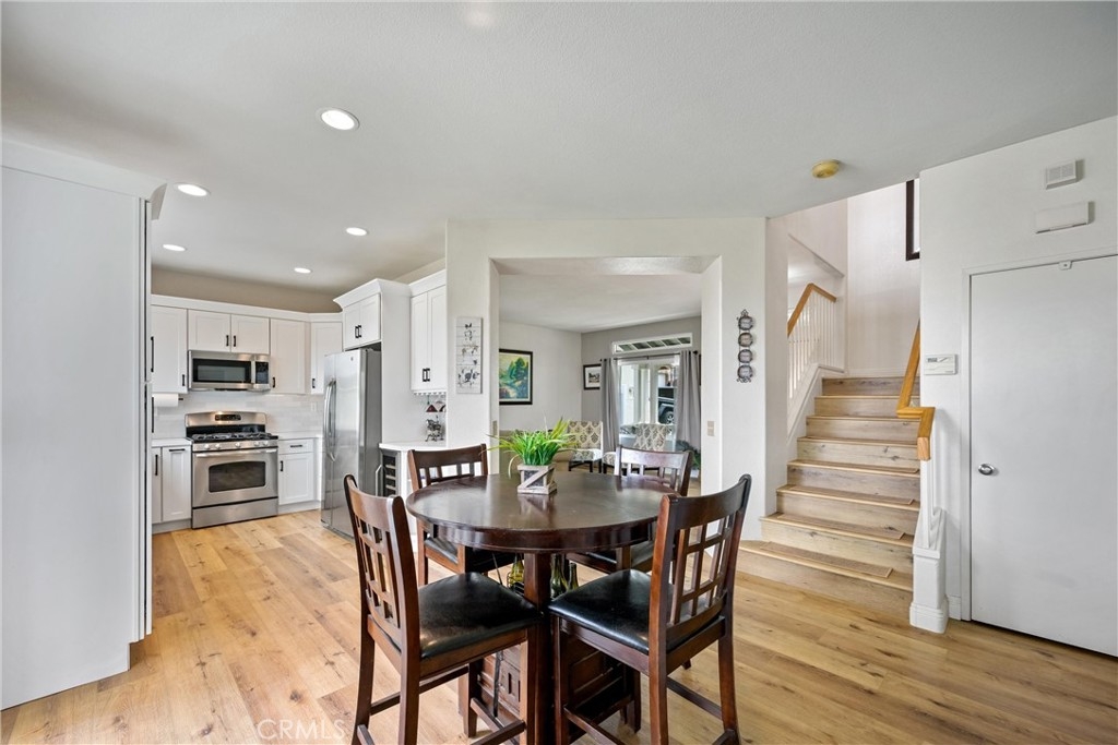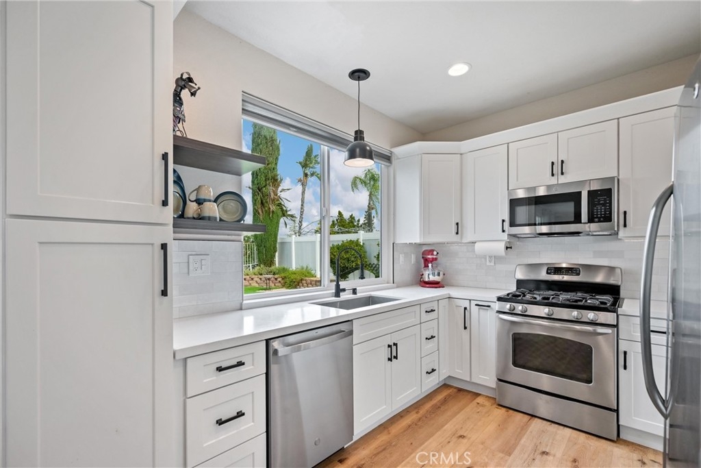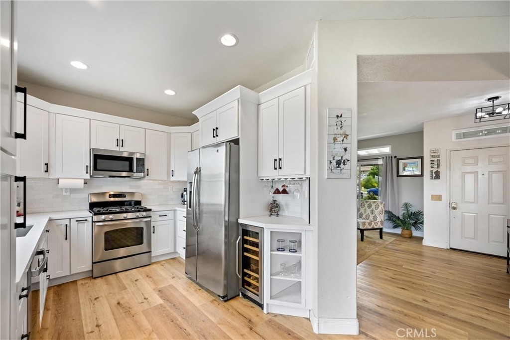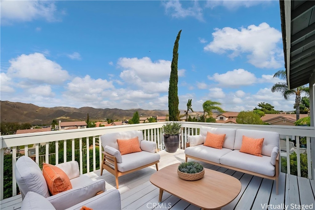 3 BED + LOFT | FULLY PAID SOLAR | REMODELLED KICHEN | OPEN CONCEPT LIVING | PANORAMIC VIEW ON PREMIUM LOT | MOVE-IN READY | Welcome to this beautifully upgraded home in the highly sought-after Horsethief Canyon Community, nestled in the heart of Corona. From the moment you arrive, the inviting front porch with custom stone accents sets the tone—perfect for enjoying your morning coffee. Step inside to an abundance of natural light complemented by luxury plank flooring that flows throughout the main living spaces. The Living Room offers an ideal setting for entertaining, while the separate Family Room features a cozy gas fireplace—perfect for movie nights and gatherings. At the center of the home is the stunning, fully upgraded Chef’s Kitchen. Thoughtfully designed, it boasts new GE appliances, white shaker cabinetry, upgraded countertops, a custom backsplash, deep sink, stainless-steel pull-out shelves, pot & pan drawers, and a built-in wine fridge with wine rack. The adjoining Dining Area includes a sliding door to the backyard, making entertaining effortless. Upstairs, the Primary Suite showcases cathedral ceilings, abundant natural light, and picturesque views. The Ensuite Bathroom features dual vanities, a shower/tub combo, walk-in closet, and privacy door. Bedrooms #2 and #3 are generously sized, and Bathroom#2 offers dual sinks and a shower/tub combo. The loft provides the perfect space for a home office or flex area, complete with access to an oversized deck—ideal for soaking in morning sun or enjoying sunset views. Downstairs includes a convenient powder room and a dedicated laundry room with ample cabinetry and direct garage access. The low-maintenance Backyard is an entertainer’s dream, featuring a covered patio, artificial turf, custom pavers, dog run for furry friends, lemon & mandarin orange trees, a Tuff Shed, and durable vinyl and wrought iron fencing. Additional highlights include energy-efficient solar and recessed lighting throughout. Enjoy resort-style community amenities, including two nearby pools, spa, clubhouse, gym, park with walking/running trails, and sports courts. Ideally located within walking distance to the elementary school and surrounded by scenic trails, this beautifully cared-for home blends comfort, style, & community living at its finest. Easy access to Highway 15 and the nearby 15/91 Expressway entrance make commuting to Orange County a breeze. Enjoy peaceful living in this beautiful, turnkey home that truly has it all!