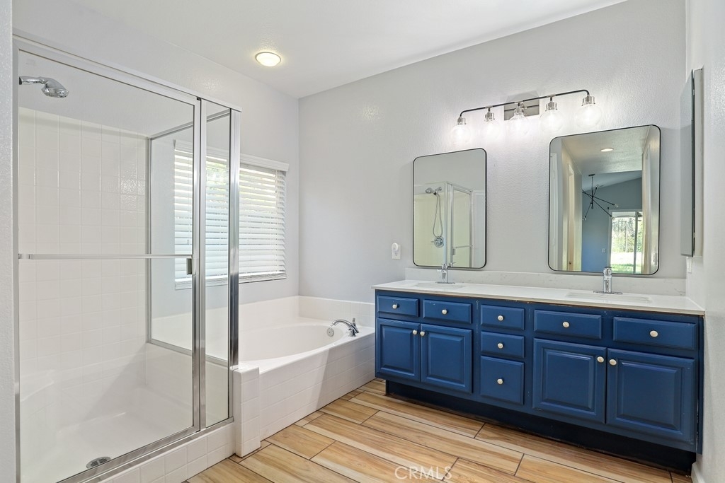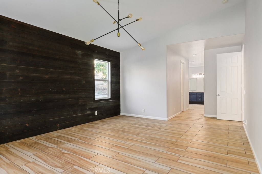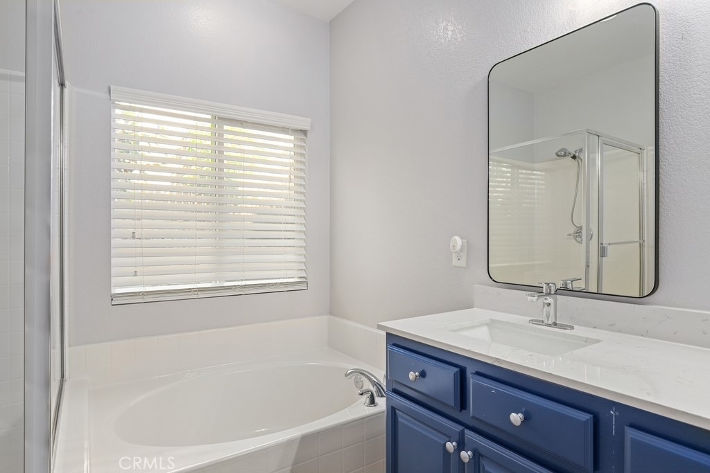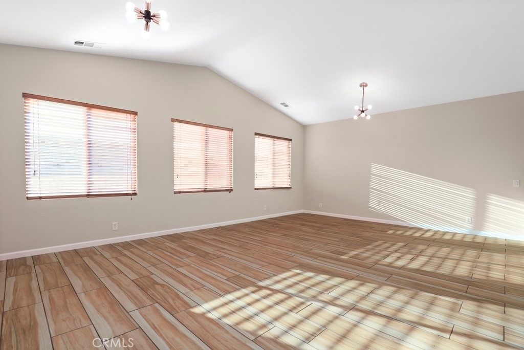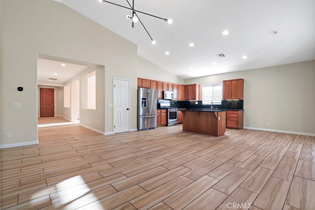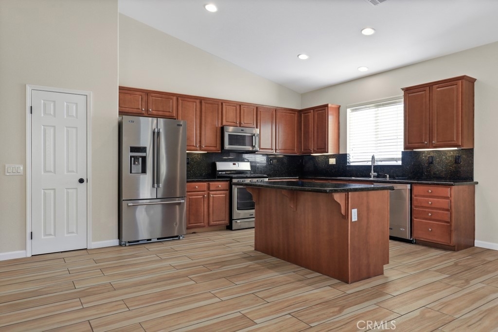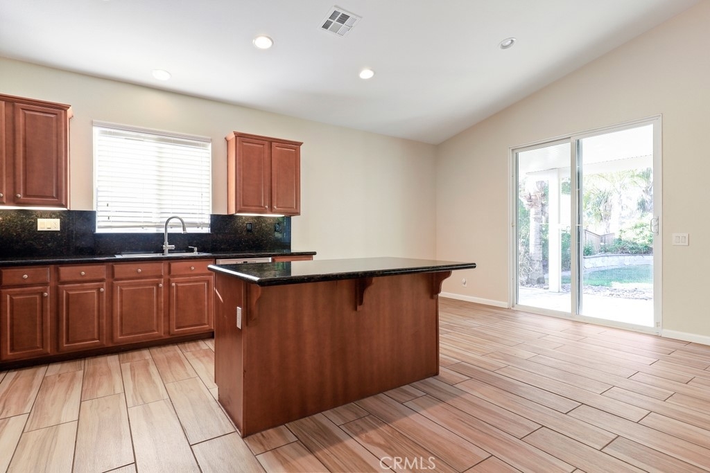 This gorgeous property is nestled within a beautifully landscaped setting. Immaculate mature landscaping greets you as you arrive, setting the tone for this well-maintained and move-in ready home. A convenient 2-car garage provides ample space for vehicles and storage in addition to RV parking. Enjoy the beauty and durability of wood-look tile flooring throughout the home, with plush carpeting in the bedrooms for added comfort. Modern light fixtures illuminate every room, enhancing the home's contemporary style. The formal living and dining areas offer a sophisticated space for entertaining guests. The open kitchen features an island with bar seating, granite countertops, stainless steel appliances, a 5-burner stove, and a spacious pantry. Relax in the family room with its floor-to-ceiling fireplace with a wood mantle, seamlessly connected to the dining area and opening to the outdoor patio through a glass slider. Go outside to the beautiful covered patio, complete with a ceiling fan, overlooking a park-like backyard. Mature trees, shrubs, and lush grass create a serene environment with stunning views of the hills. The spacious bedrooms provide ample room. The oversized primary suite features a wood accent wall, two walk-in closets, and a slider to the back patio. The ensuite bathroom boasts a dual sink vanity, soaking tub, and separate shower. A convenient laundry room is located off the garage entrance, making chores a breeze. Vaulted ceilings and abundant natural light throughout the home create an airy and inviting atmosphere. Close proximity to local parks with hiking trails, top-rated schools, the 15 freeway, and shopping centers. This stunning home combines luxurious living with practical amenities, making it the perfect place to create lasting memories. Don’t miss your chance to own this exceptional property!