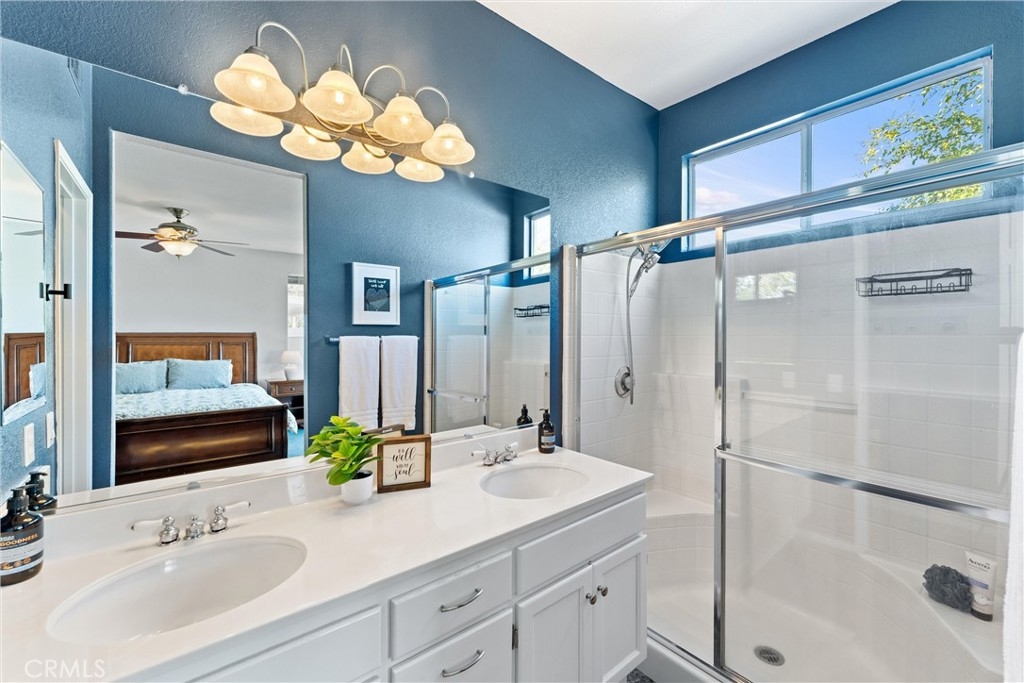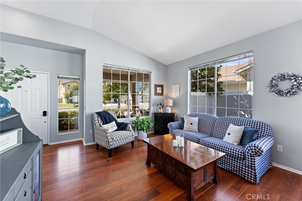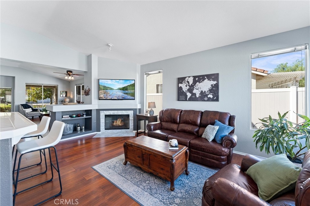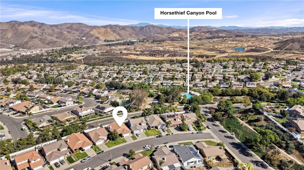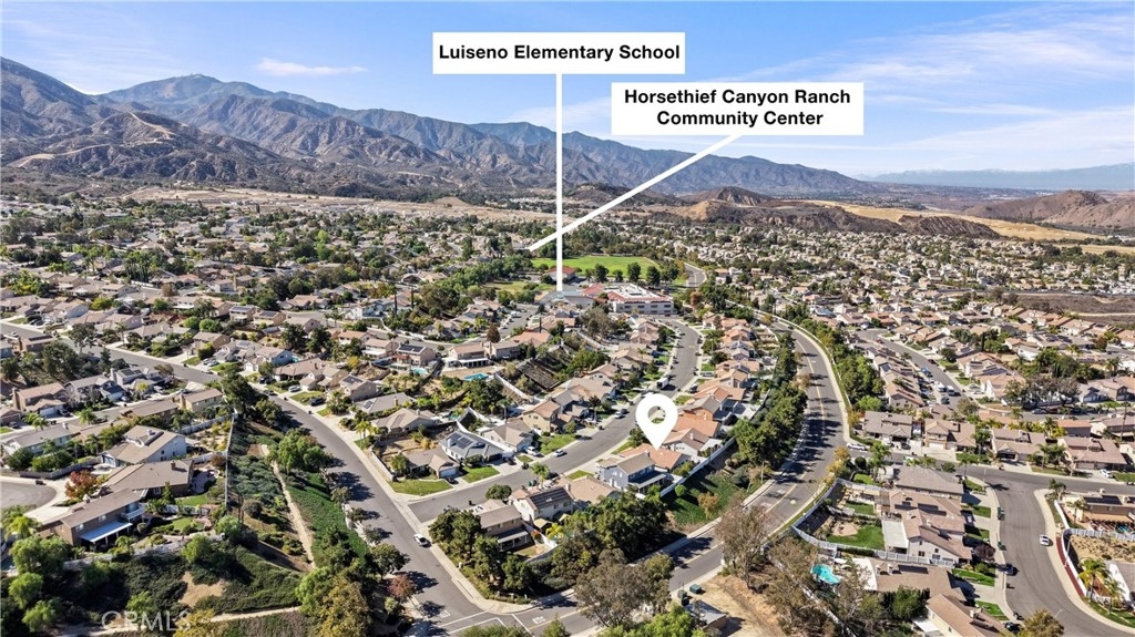 SINGLE STORY | PANORAMIC VIEWS | UPGRADED AND MOVE-IN READY | LOW HOA | LOW TAXES | Impeccably maintained by its original owner, this stunning open-concept, single-story home is located in the highly desirable Horsethief Canyon Community. From the moment you arrive, the lovely curb appeal and expansive front porch welcome you—an ideal spot to enjoy your morning coffee while taking in the sunrise. Step inside and be greeted by soaring cathedral ceilings, luxury flooring, and large picture windows that fill the home with natural light at every angle. The Living Room and formal Dining Room create the perfect space for entertaining, while the heart of the home—the Kitchen—impresses with a spacious center island featuring a sink, breakfast bar seating, walk-in pantry, and informal dining nook. Open concept living continues with the adjacent Family Room, highlighted by an upgraded marble-surround fireplace and direct access to the backyard through sliding glass doors. The Primary Ensuite Bedroom is a serene retreat with a private slider to the backyard. The Primary Ensuite Bathroom offers walk-in shower, dual sinks, upgraded flooring, a linen closet, and a generous walk-in closet. Bedroom #2 and Bedroom #3 are both well-sized and perfect for family or guests, with a full bathroom conveniently nearby. A separate laundry room provides both function and convenience for modern living. The low-maintenance backyard is a true haven—featuring panoramic views, a built-in BBQ with island, fountain, raised lounge area, mature trees, and a dedicated 220-volt pad for a spa, all surrounded by durable and maintenance free vinyl fencing. A long and wide side-yard would be perfect for a dog run or garden space! Energy efficiency features include LED lighting and multiple ceiling fans throughout. Fiber Optic High-Speed Internet on property - perfect for remote workers and everyone wanting stability, reliability and ultra-high-speed entertainment access. Enjoy resort-style community amenities, including two nearby pools, spa, clubhouse, gym, park with walking/running trails, and sports courts. Ideally located within walking distance to the elementary school and surrounded by scenic trails, this beautifully cared-for home blends comfort, style, and community living at its finest. Easy access to Highway 15 and the nearby 15/91 Expressway entrance make commuting to Orange County a breeze. Enjoy peaceful living in this beautiful, turnkey home that truly has it all!