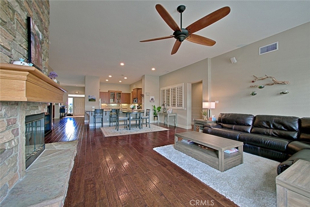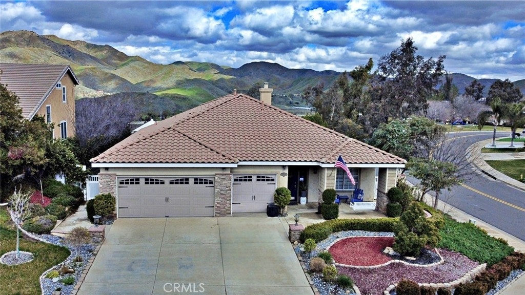 GORGEOUS CORNER LOT PROPERTY WITH A BREATH TAKING VIEW OF THE HILLS IN DESIRABLE HORSETHIEF CANYON!!! THIS HOME HAS IT ALL AND IT IS TURNKEY!! AS YOU PULL UP YOU CAN SEE IT HAS GREAT CURB APPEAL WITH PRIDE OF OWNERSHIP. WALKING UP ENJOY THE CUSTOM LANDSCAPE AND A NICE FRONT PATIO AREA FOR RELAXING. WALK INTO YOUR NEW HOME AND YOU ARE WELCOMED BY AN OPEN FLOOR PLAN, REAL HARD WOOD FLOORS, PLANTATION SHUTTERS AND HIGH CEILINGS THROUGHOUT. THE FORMAL WELCOMING ROOM IS PERFECT FOR HAVING GUESTS OVER AND THEN BEING ABLE TO MOVE RIGHT INTO YOUR FORMAL DINING AREA FOR A FUN EVENING. THE KITCHEN IS BIG AND BEAUTIFUL!! IT HAS TILE FLOORS, TONS OF CABINET SPACE, GRANITE COUNTER TOPS, RECESSED LIGHTING AND IT WAS RECENTLY REMODELED WITH A NEW DISHWASHER. NEXT TO THE KITCHEN YOU HAVE YOUR LAUNDRY AREA WITH A GRANITE COUNTERED LARGE SINK AND MORE CABINETS SPACE. THE LIVING ROOM IS SPACIOUS WITH A COZY STACKSTONE FIREPLACE FOR THOSE CHILLY WINTER NIGHTS. IT HAS SURROUND SOUND SPEAKERS, CEILING FAN AND A SLIDING GLASS DOOR THAT OPENS TO YOUR BACKYARD. THE 3 STANDARD BEDROOMS ALL ARE SIZED WELL WITH PLENTY OF ROOM AND THEY ARE LOCATED ON THE NORTH SIDE OF THE PROPERTY, ONE OF THE BEDROOMS IS BEING USED AS AN OFFICE AS IT DOES NOT HAVE A CLOSET HOWEVER IT CAN EASILY BE CONVERTED. THE HALL WAY BATHROOM HAS CUSTOM TILE FLOORS AND DOUBLE SINK WITH SEPERATE SHOWER AREA. TALK ABOUT A BEAUTIFUL MASTER BEDROOM!! IT IS LOCATED SEPERATLY ON THE OPPOSITE SIDE OF THE HOUSE FROM THE OTHER BEDROOMS, IT OFFERS CROWN MOLDING, A SLIDING GLASS DOOR WITH PLANTATION SHUTTERS, CEILING FAN AND IT CONNECTS TO YOUR BIG MASTER BATHROOM WHICH HAS DOUBLE SINKS, SEPERATE SHOWER/TUB AREA AND A NICE WALK IN CLOSET. THE BACKYARD IS A PERFECT SIZE FOR ENTERTAINING AND OFFERS ONE OF THE BEST VIEWS OF THE SURROUNDING HILLS WITH NO HOUSE BEHIND YOU AS IT BACKS UP TO A NATURAL SETTING. IT HAS A NICE GAZEBO AND A GOOD SIZED DOG RUN AREA. OTHER GREAT FEATURES ARE THE 3 CAR GARAGE THAT HAS ATTIC STORAGE, LANDCAPE IS ON AUTOMATIC SPRIKLER AND DRIP SYSTEM, NEW A/C SYSTEM AND SO MUCH MORE PLUS OFFERING A 1 YEAR HOME WARRANTY! COME TAKE A LOOK, YOU WILL NOT BE DISAPPOINTED!!!!