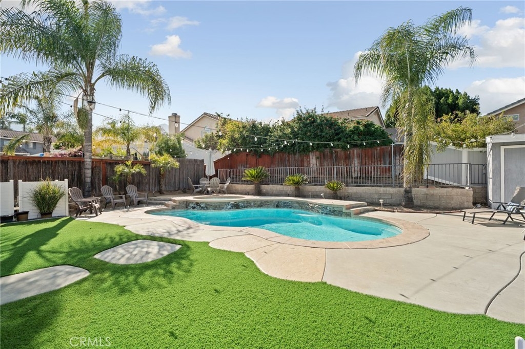 Welcome to your dream home in the desirable Horsethief Canyon neighborhood! This property boasts great curb appeal, featuring lush green grass and solar panels for energy efficiency. Enjoy a resort-style lifestyle with fantastic community amenities, including two sparkling pools, parks, a baseball field, a vibrant clubhouse, tennis courts and more. With low taxes and a low HOA, this home offers incredible value. As you step inside, you’ll be greeted by a spacious family room adorned with a cozy fireplace and soaring high ceilings, creating an inviting atmosphere. The bright dining area seamlessly connects to the kitchen, with sliding doors that lead to your expansive backyard oasis, perfect for entertaining. Conveniently located off the kitchen is a powder bathroom, adding to the home’s practicality. The property also features a water softener system, ensuring comfort and convenience in your daily routines. Upstairs, the primary bedroom offers serene views of the backyard and features an en-suite bathroom with double sinks. Two additional bedrooms and a full bath complete the upper level, providing plenty of space for family or guests. The backyard is an entertainer’s paradise, featuring a refreshing swimming pool and spa, expansive patio cover with ceiling fans for comfort, low-maintenance artificial turf, and a shed. String lights add a magical touch to evening gatherings, making this home the perfect setting for unforgettable memories. The community hosts numerous events throughout the year, fostering a sense of belonging and connection among neighbors. Don’t miss your opportunity to own this remarkable home in Horsethief Canyon, where comfort, community, and convenience converge!