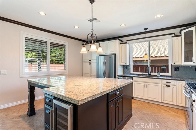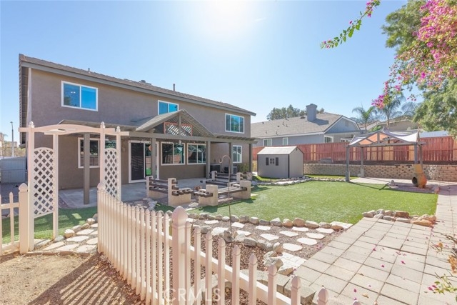 Nestled in one of the most sought-after communities, this beautiful home offers 4 bedrooms and 3 bathrooms, including a convenient full bedroom and bathroom downstairs—perfect for guests or extended stays. From the moment you arrive, you’ll be captivated by the magnificent curb appeal and inviting front porch—an ideal spot to relax and enjoy a peaceful afternoon. Step inside to discover an open and airy layout with vaulted ceilings and gorgeous tile flooring throughout. The formal living and dining rooms provide the perfect setting for entertaining family and friends, while the meticulously remodeled kitchen will surely impress even the most discerning chef. Featuring elegant cabinetry with soft-close drawers, sleek granite countertops, stainless steel appliances, a spacious island with dining counter, and even a built-in wine refrigerator, this kitchen truly has it all. Gather in the spacious family room, where a cozy fireplace creates the perfect backdrop for movie nights or quiet evenings at home. Upstairs, you’ll find two generously sized bedrooms, a full bathroom, and a large bonus room/den that can easily be transformed into a fifth bedroom, game room, or the ultimate man cave. The primary suite offers vaulted ceilings, a large walk-in closet, and plenty of natural light, creating a comfortable and serene retreat. Additional highlights include newer dual-pane windows, custom wood shutters, crown molding, QuietCool whole house fan, ceiling fans throughout, newer water heater, and both HVAC systems recently replaced for peace of mind and energy efficiency. Step outside and enjoy the beautifully designed backyard featuring a patio cover, concrete deck, firepit sitting area, and a detached patio space perfect for gatherings. Low-maintenance artificial turf, a dedicated garden area, and a side yard with potential boat or trailer parking make this yard both functional and fun. The 4-car garage comes equipped with cabinetry and built-in storage racks, and the tandem space offers an optional builder conversion for an additional downstairs bedroom if desired. And the best part? LOW TAXES and NO Mello-Roos! Enjoy all the wonderful amenities Horsethief Canyon Ranch has to offer, including community pools, parks, sports courts, clubhouse, fitness center, and more—all with a true sense of community and scenic mountain views. This is the home you’ve been waiting for—where comfort, style, and value come together beautifully.