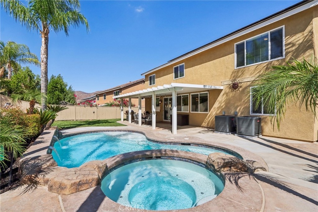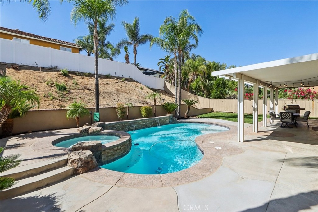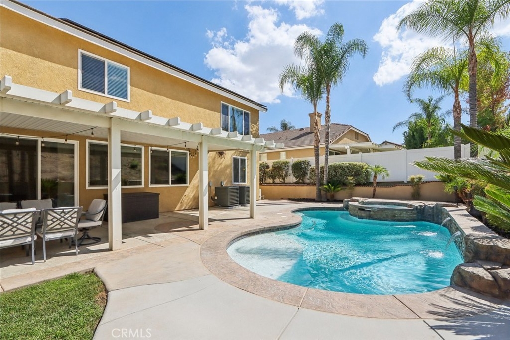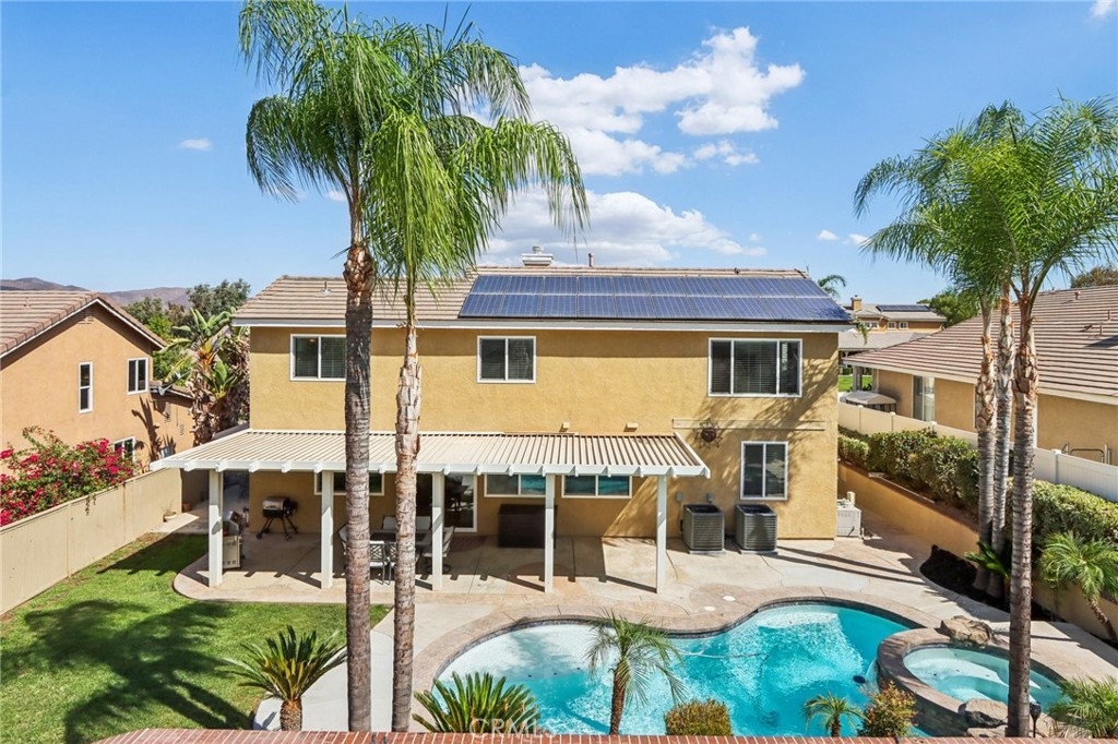 Don't miss the opportunity to own this stunning pool home nestled in the highly desirable Horsethief Canyon Ranch community. **PAID OFF SOLAR AND LOW TAXES** provide significant long-term savings and peace of mind. This home features 4 bedrooms, 3 bathrooms, and a versatile large bonus room, making it perfect for families of all sizes. Step inside to discover an open and airy floor plan that welcomes natural lighting, creating a warm and inviting ambiance throughout the home. The chef's kitchen boast an abundance of custom cabinetry for all your storage needs, granite countertops, a large island, and stainless steel appliances. The separate family room features a cozy stone fireplace, providing the perfect spot for relaxing evenings, while the spacious living room easily accommodates gatherings of family and friends. The expansive master suite, complete with an ensuite bathroom featuring dual sinks, a walk-in shower, and a soaking tub designed for ultimate relaxation. The generously sized bonus room offers endless possibilities—convert into a 5th bedroom, create a private home office, a home theater, or a game room to suit your lifestyle. Each of the bedrooms provides ample space and comfort. A convenient downstairs bedroom and full bathroom for hosting guests. Step outside to your private backyard paradise, featuring a covered patio for shaded relaxation, a sparkling pool with waterfalls, and an inviting spa. Imagine summer pool parties, weekend BBQs, and tranquil evenings under the stars with family and friends. The extra-deep 4-car garage has storage cabinets, while designed with versatility in mind—store your boat, recreational vehicles, or a small camper with ease. Additional highlights include NO MELLO-ROOS, newer dual-zone A/C for optimal comfort, a recently replaced water heater and roof, a car charger for electric vehicles, Ring doorbell and alarm, Ecobee thermostats, quiet cooling fan, crown molding, a resurfaced pool, updated windows and sliding door for energy efficiency. Residents enjoy access to a wide array of HOA amenities: a community pool and spa, clubhouse, sports courts, playgrounds, dog parks, and a fully equipped gym/exercise room—all for a low monthly fee. Conveniently located near premier shopping, dining, and entertainment options, with easy access to the 15 and 91 freeways for commuters. This is truly a gem of Temescal Valley, offering a rare blend of luxury, comfort, and community—the perfect place for your family to call HOME!