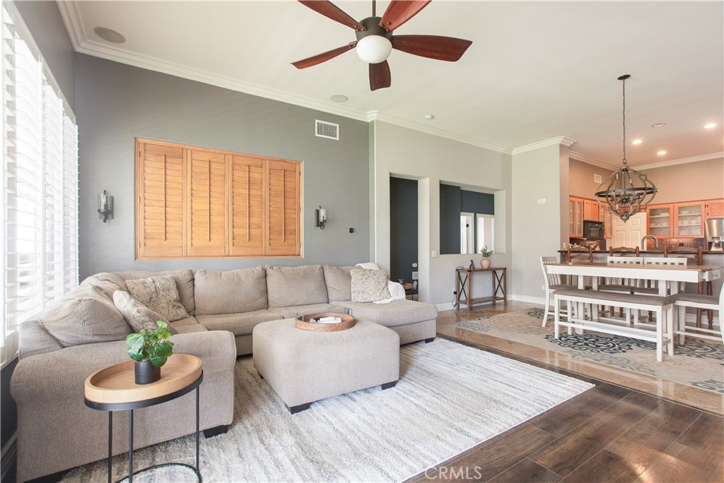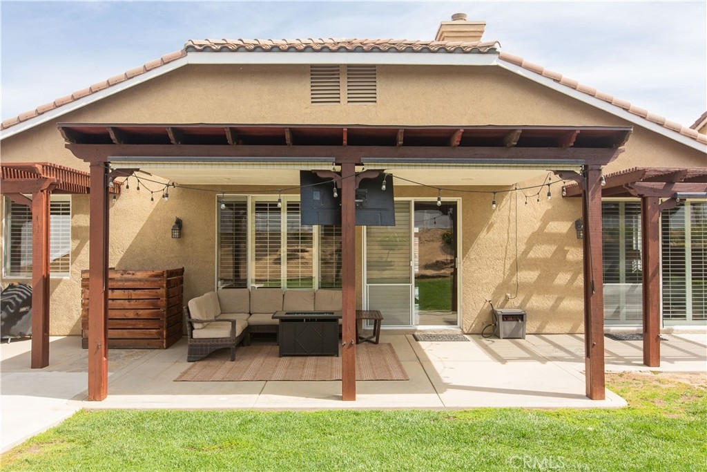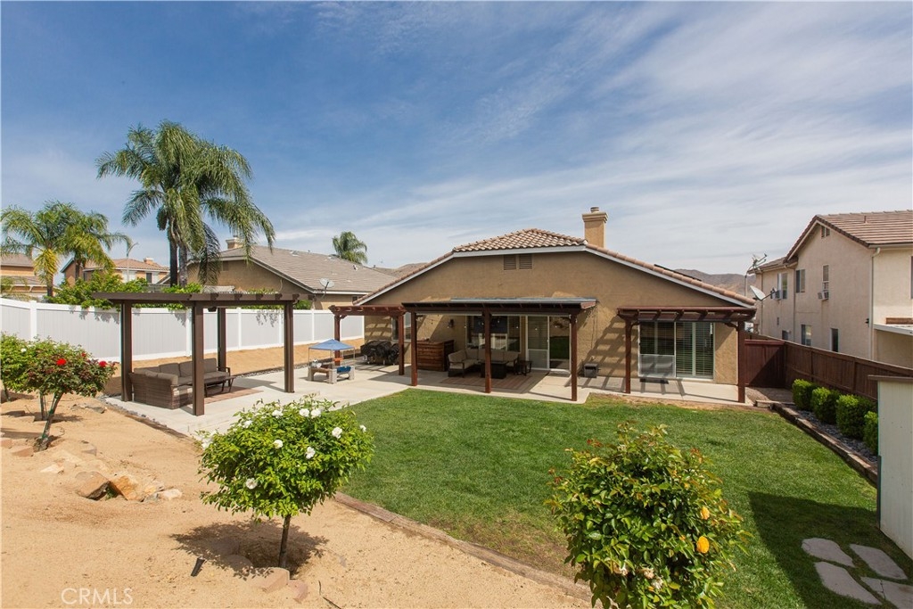 Welcome to this beautifully upgraded single-story home in the highly sought-after Horsethief Canyon Ranch community—an ideal choice for a growing family, first-time buyer, or downsizer seeking comfort, style, and convenience. Thoughtfully designed with both functionality and elegance in mind, this residence offers 4 bedrooms, 2 bathrooms, and approximately 2,176 square feet of living space. From the moment you enter, you’ll notice the exceptional attention to detail and true pride of ownership shown throughout. The main living area is anchored by a stunning ledge-stone fireplace, creating an atmosphere that’s perfect for both relaxing evenings and entertaining guests. The open-concept kitchen seamlessly connects to the living and dining areas and is beautifully appointed with granite countertops and abundant cabinetry for ample storage. Just off the kitchen, a separate laundry room adds everyday convenience and functionality. The well-designed floor plan offers optimal privacy, with the primary suite in its own wing of the home, featuring an en-suite bathroom with dual sinks, a soaking tub, a separate shower, and a generously sized walk-in closet. The additional three bedrooms and a second full bathroom are thoughtfully positioned on the opposite side, making it ideal for families, guests, or used as an office or home gym. This home is rich with upgrades, including crown molding, upgraded baseboards, luxury laminate wood flooring, travertine tile, plantation shutters, designer lighting, ceiling fans, and an interior surround sound system. Recent improvements such as a NEW HVAC system and NEW water heater provide added comfort, efficiency, and peace of mind. Outside, your own private backyard retreat is complete with manicured landscaping, two covered patio areas, and a storage shed. The 3-car garage is equipped with built-in storage racks, offering excellent organization and functionality. Ideally located near parks within a welcoming and well-maintained community, residents enjoy access to exceptional amenities including private security, a fitness center, two pools and a spa, tennis courts, a clubhouse, and scenic walking trails.With Low taxes, Low HOA, No Mello-Roos, and a FULLY PAID OFF Solar System, this home delivers outstanding value, efficiency, and lifestyle. A true gem in Temescal Valley, this home offers the perfect blend of comfort, style, and effortless California living!