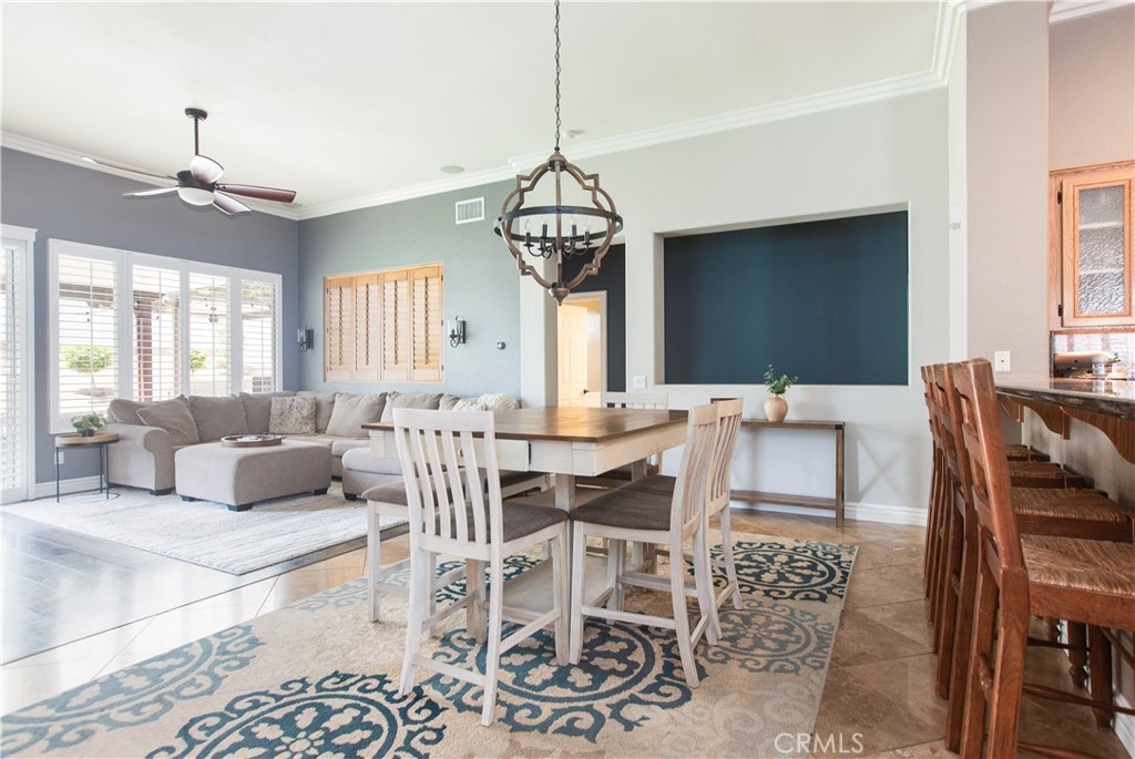 Welcome to this beautifully upgraded single-story home in the highly sought-after Horsethief Canyon Ranch community—an ideal choice for a growing family, first-time buyer, or downsizer seeking comfort, style, and convenience. Thoughtfully designed with both functionality and elegance in mind, this residence offers 4 bedrooms, 2 bathrooms, and approximately 2,176 square feet of living space. From the moment you enter, you’ll notice the exceptional attention to detail and true pride of ownership shown throughout. The main living area is anchored by a stunning ledge-stone fireplace, creating an atmosphere that’s perfect for both relaxing evenings and entertaining guests. The open-concept kitchen seamlessly connects to the living and dining areas and is beautifully appointed with granite countertops and abundant cabinetry for ample storage. Just off the kitchen, a separate laundry room adds everyday convenience and functionality. The well-designed floor plan offers optimal privacy, with the primary suite in its own wing of the home, featuring an en-suite bathroom with dual sinks, a soaking tub, a separate shower, and a generously sized walk-in closet. The additional three bedrooms and a second full bathroom are thoughtfully positioned on the opposite side, making it ideal for families, guests, or used as an office or home gym. This home is rich with upgrades, including crown molding, upgraded baseboards, luxury laminate wood flooring, travertine tile, plantation shutters, designer lighting, ceiling fans, and an interior surround sound system. Recent improvements such as a NEW HVAC system and NEW water heater provide added comfort, efficiency, and peace of mind. Outside, your own private backyard retreat is complete with manicured landscaping, two covered patio areas, and a storage shed. The 3-car garage is equipped with built-in storage racks, offering excellent organization and functionality. Ideally located near parks within a welcoming and well-maintained community, residents enjoy access to exceptional amenities including private security, a fitness center, two pools and a spa, tennis courts, a clubhouse, and scenic walking trails.With Low taxes, Low HOA, No Mello-Roos, and a FULLY PAID OFF Solar System, this home delivers outstanding value, efficiency, and lifestyle. A true gem in Temescal Valley, this home offers the perfect blend of comfort, style, and effortless California living!