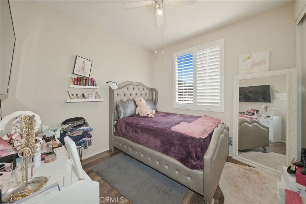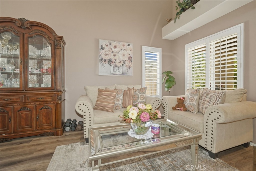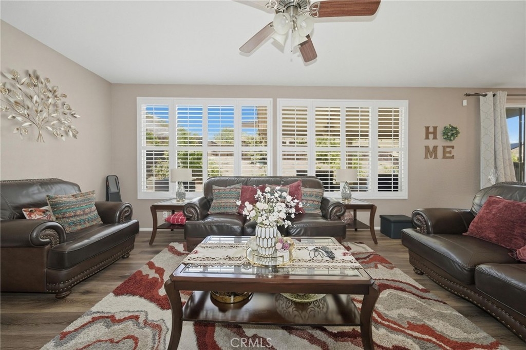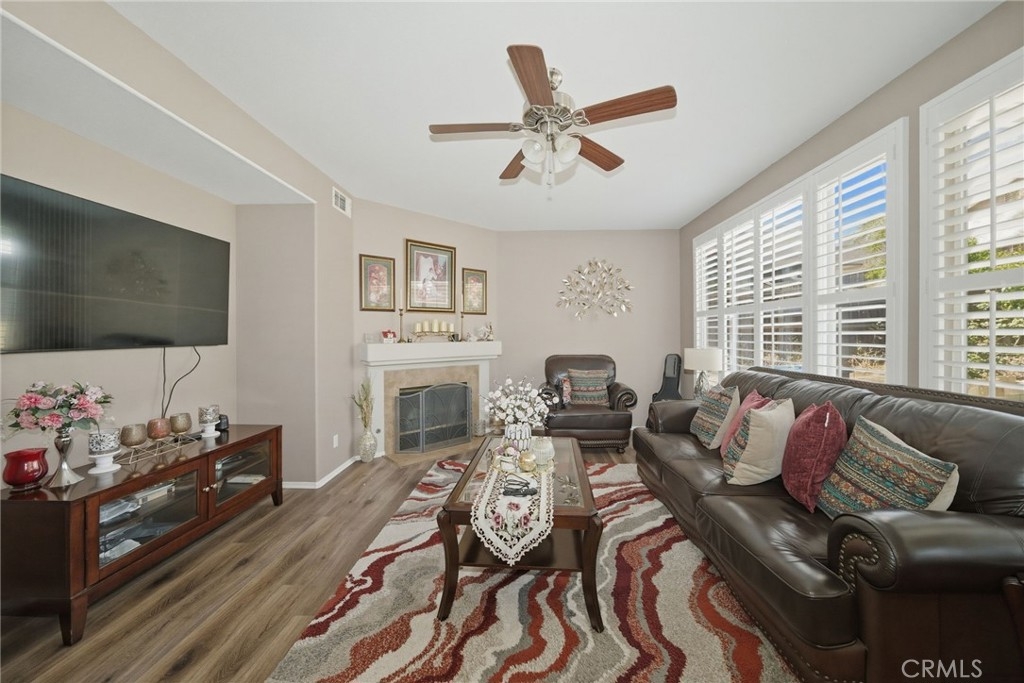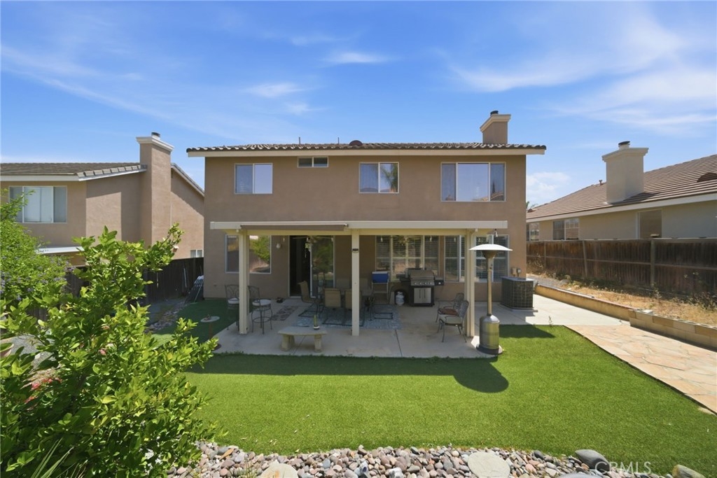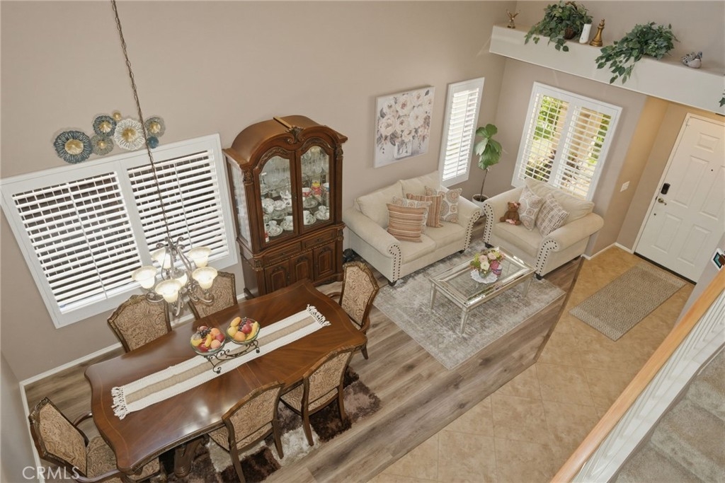 Welcome to this stunning two-story home located in the highly desirable Horsethief Canyon community of Corona, where comfort, style, and convenience come together beautifully. This thoughtfully designed residence features a three car garage with a highly sought-after downstairs bedroom and full bathroom—perfect for guests, in-laws, or multigenerational living. As you enter, you’ll be greeted by soaring double-height ceilings in the formal living and dining areas, creating an open and airy ambiance filled with natural light. An additional separate family room with a cozy fireplace offers the ideal space for relaxing or entertaining. The home is enhanced with elegant custom plantation shutters, durable laminate flooring, and a well-appointed kitchen featuring granite countertops. From the second floor, enjoy an impressive overlook into the main living spaces below, adding architectural charm and connectivity throughout the home. Upstairs, you’ll find three additional bedrooms, including a spacious and inviting primary suite complete with an en-suite bathroom, soaking tub, separate shower, dual sinks, and a generous walk-in closet. Step outside to your private backyard retreat, designed for both relaxation and low maintenance. Enjoy the Alumawood patio cover with ceiling fans—perfect for outdoor dining or lounging—along with artificial turf and a variety of mature fruit trees, including avocado, lemon, loquat, and orange. This tranquil outdoor space offers both privacy and natural beauty. Ideally located in a prime area within a highly regarded school district, this home also provides easy access to freeways, shopping, and dining—making everyday living a breeze. Residents of Horsethief Canyon enjoy exceptional community amenities, including a pool, spa, clubhouse, tennis courts, sports courts, and scenic picnic areas—all surrounded by picturesque natural landscapes. With a low HOA, you can enjoy resort-style living without compromise.