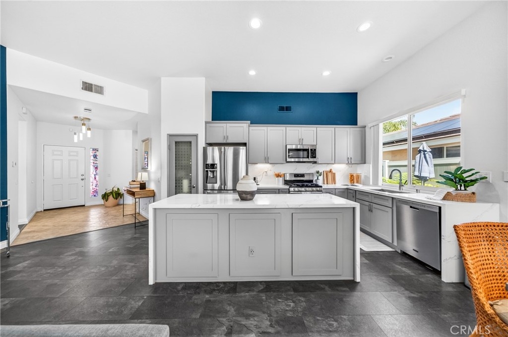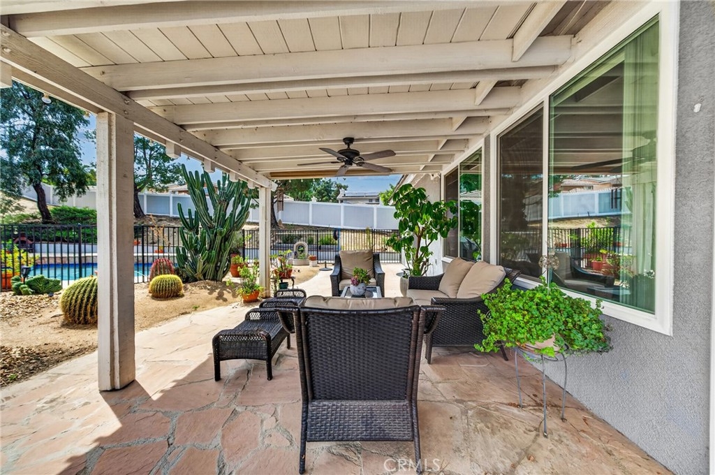 OPEN HOUSE 4/25 11AM-2PM***CORNER LOT + SINGLE STORY + POOL HOME IN HORSETHIEF CANYON RANCH - a combination that is hard to find!*** As soon as you step inside, you’re welcomed into a completely renovated open floor plan designed for both everyday living & entertaining! European flooring flows throughout the home, leading you into the remodeled kitchen featuring; stainless steel appliances, modern grey cabinetry, stunning quartz waterfall countertops & backsplash with a large island that opens to the dining and living areas. The living room is centered around a cozy fireplace with coordinating quartz surround & modern glass touches, creating a warm and inviting focal point. Step outside to where you’ll be spending most of your time! The backyard feels like a desert oasis and is set up perfectly for entertaining! With a covered patio for gatherings & low-maintenance landscaping, the POOL & SPA area sits in its own separate space with a built-in fireplace and seating area...perfect for relaxing and hosting! The primary suite offers direct access to the backyard & feels like its own retreat, complete with a beautifully updated en-suite bathroom with dual vanities, custom granite countertops, complimentary cabintery, modern lighting, a spa-like walk-in shower with tile surrounds & a walk-in closet. Down the hall you’ll find two additional spacious bedrooms, one with walk-in closet, along with the guest bathroom showcasing an updated granite vanity with contrasting cabinetry & a walk-in shower. Additional upgrades include; NEW dual-pane windows, SOLAR to help keep utility costs down, NEW vinyl fencing, NEW furnace & a NEW water heater... giving you peace of mind knowing many of the major updates have already been taken care of! Located within the highly sought-after Horsethief Canyon Ranch, a master-planned community nestled against the Cleveland National Forest, walking distance to k-8 schools offering private security, fitness center, two community pools and spa, tennis courts, clubhouse, exercise trails, and more. Low taxes and low HOA complete this exceptional opportunity. Come experience the lifestyle and value that make Horsethief Canyon Ranch such a desirable place to call home!
