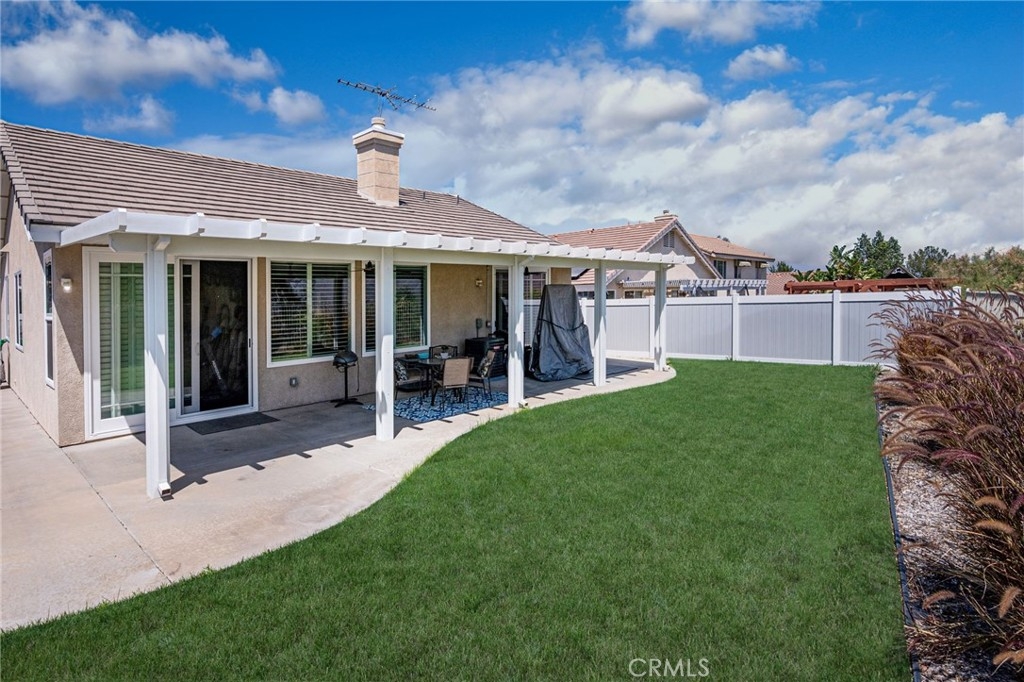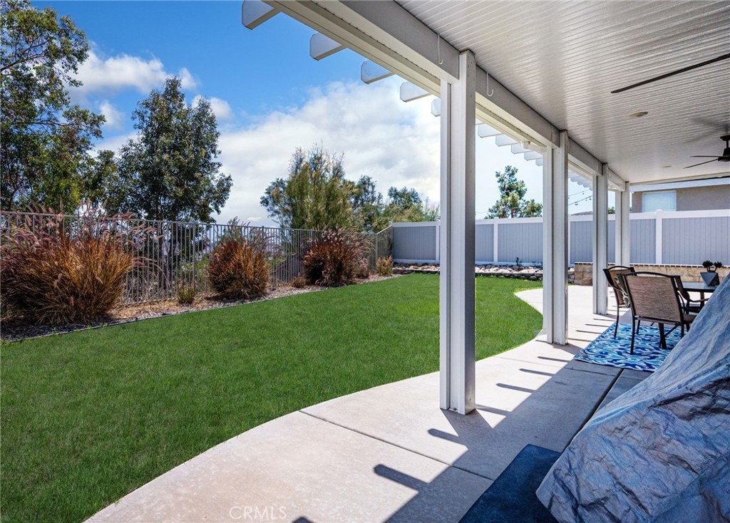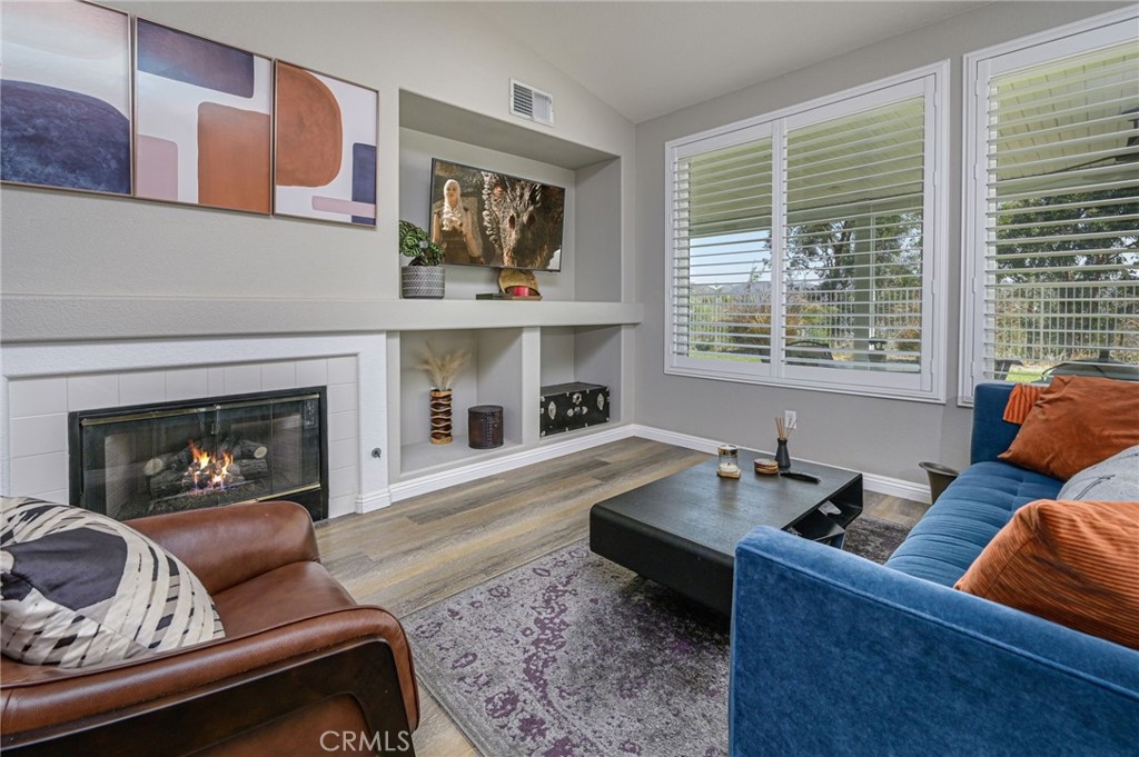 Irresistible Appeal of Romantic Serenity! Approx. $80K worth of upgrades. Ideally located on a vantage point in a hillside community that affords invigorating views of the Temescal Valley hills, this home's inviting mix of modern & traditional styles combine to make it a comfortable retreat from the city's hustle & bustle. A charming interior - accentuated by resplendent vinyl flooring, stylish wood plantation shutters, warm earth tones & architectural low-E windows - conjures images of artful ingenuity. A tranquil environment plus pools, tennis courts, basketball court, baseball and soccer fields, kiddie pool, clubhouse, gym, playgrounds, parks, walking trails & dog parks complete a unique backdrop of masterful perfection. Indulge yourself in an ambience of romantic serenity! UPGRADES/AMENITIES: Resplendent waterproof vinyl flooring & upgraded baseboards throughout installed in 2017. Double pane low-E windows & sliding doors installed 9/2020. Stylish wood plantation shutters t/o except in kitchen which has vinyl plantation shutters in wood frame (installed in 2019). Custom interior paint done in 2017. A/C unit & thermostat installed in 2019. Water heater tank replaced in 2018. Elegantly defined living room features a media niche and gas fireplace. Cheery dining area w/ double pane sliding door leading to the backyard for marvelous outdoor space. Gleaming kitchen features ceramic tile countertop, oak cabinets, spacious pantry & island center. Appliances: LG black 5-burner gas range w/ self-cleaning oven installed in 2019. GE dishwasher installed in 1/2022. Master suite features a ceiling fan/light fixture & sliding glass door w/ wood plantation shutters. Master bath features spacious walk-in closet, cultured marble countertop, oversized mirror & shower stall w/ glass enclosure & fiberglass surrounds. Toilets in both baths installed in 2019. Hallway bath features cultured marble countertop, tub w/ fiberglass surrounds & hand-held shower head (installed 2019) & tub w/ faucet handle (installed in 2017). Charming backyard features Alumawood patio cover (installed in 2019), ceiling fan/light fixtures & recessed lights (installed in 2019), wrought iron fence (installed in 2020), sprinklers & drip system (installed in 2021) & lush grass (planted in 2021). Durable white vinyl fences at side yards installed in 2020. Rain gutters installed in 2017. Low maintenance front yard features landscaping rocks, drought tolerant plants & drip system (all done in 2019).
